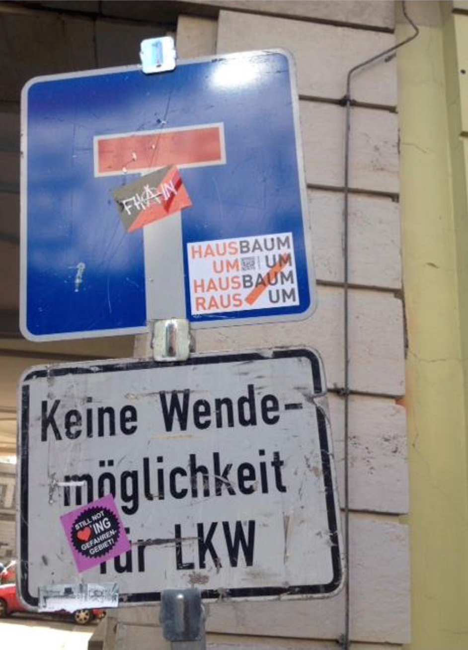 Baum um Baum um, Haus um Haus raus! Das ist die brutale Logik des Mobilitätswahns. Das ist die Logik der Stadtzerstörung. Und es ist die Logik der voranschreitenden Enteignung von städtischem Raum und städtischem Leben. In Berlin und anderswo und überall. Z.B. auch in Biel/Bienne (CH). Und anderswo und überall.